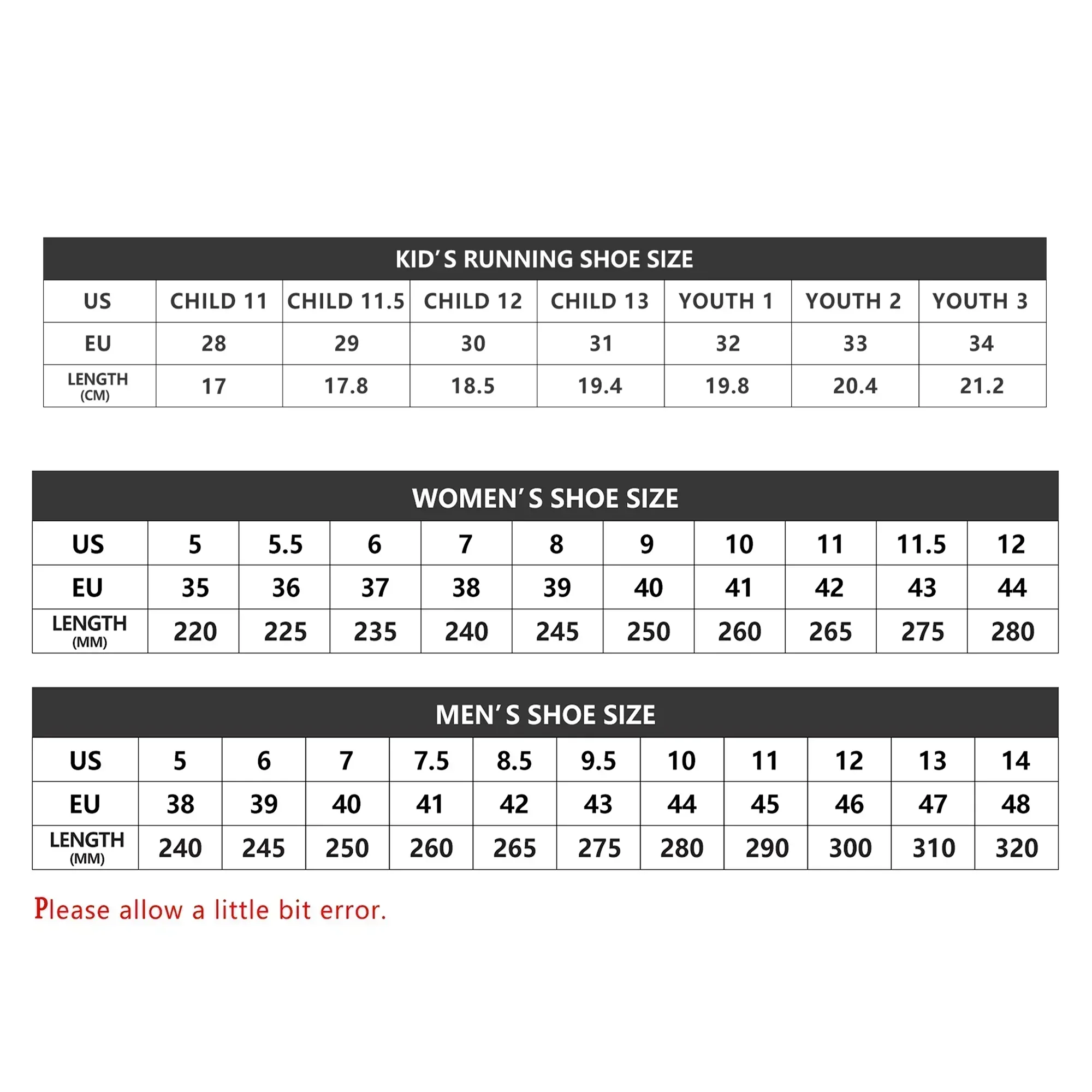 3-Due to different methods of measure,the error is allowed normally in 0-0.5 cm.