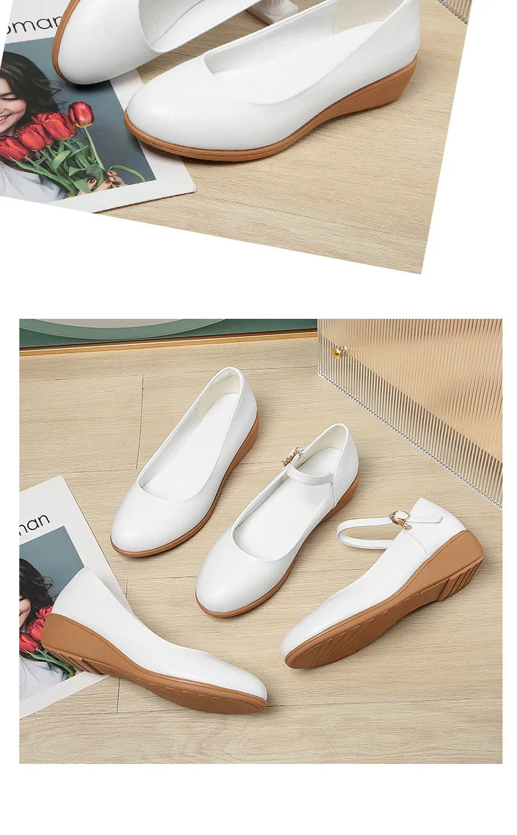 Classic White Soft Pu Leather Wedge Heel Shoes for Women Spring and Autumn New Comfortable and Versatile Work Shoes for Women