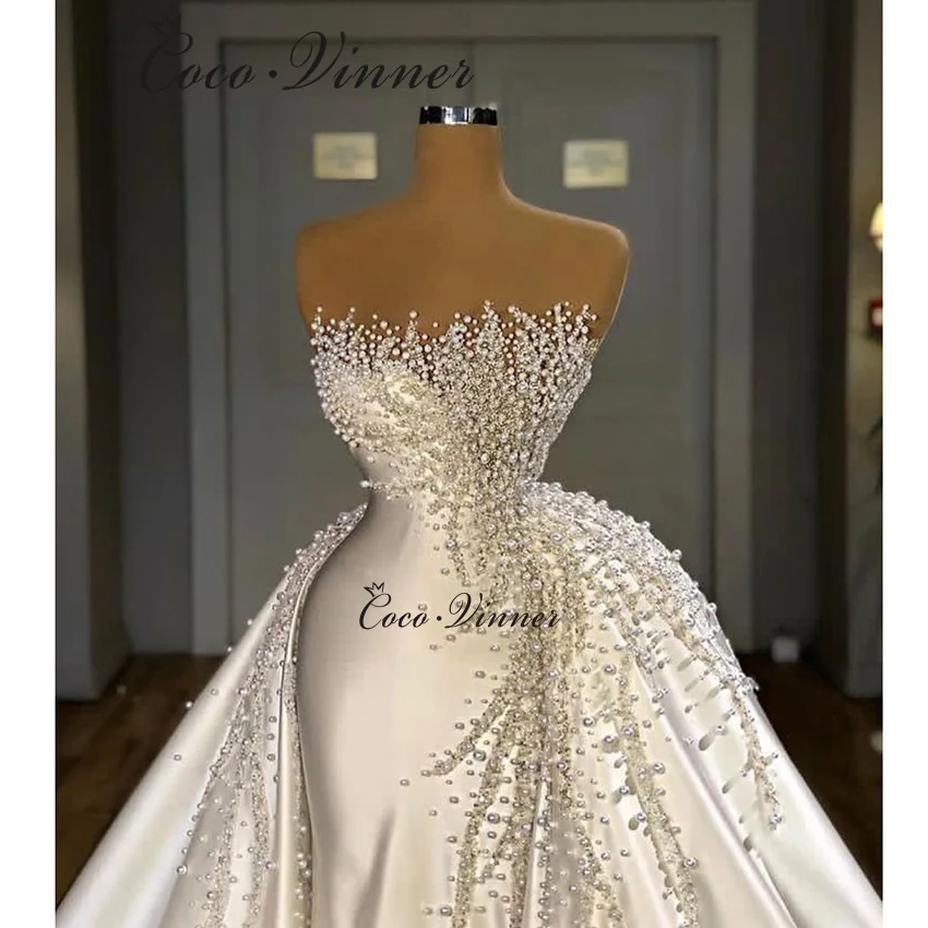 Customized Strapless Dubai 2025 New Two in one Wedding Dress Pearls Beading Mermaid Wedding Dresses With Detachable Skirt W1461