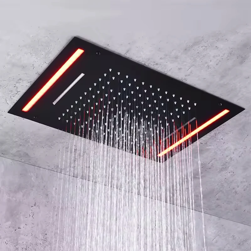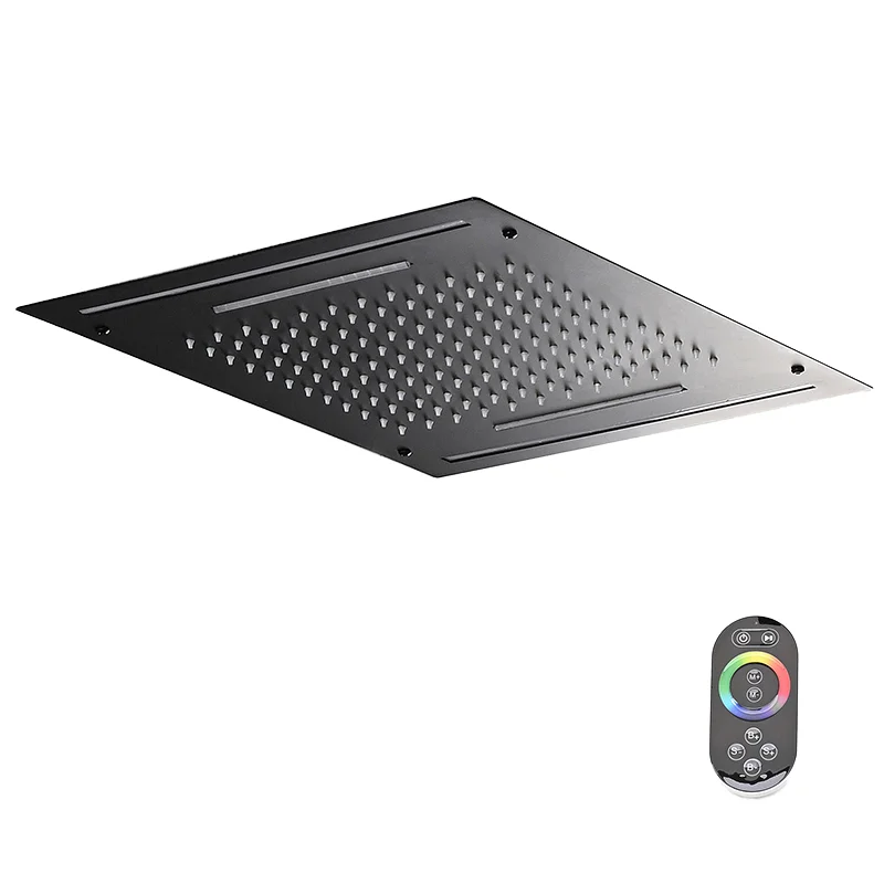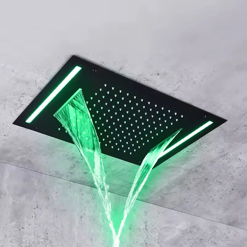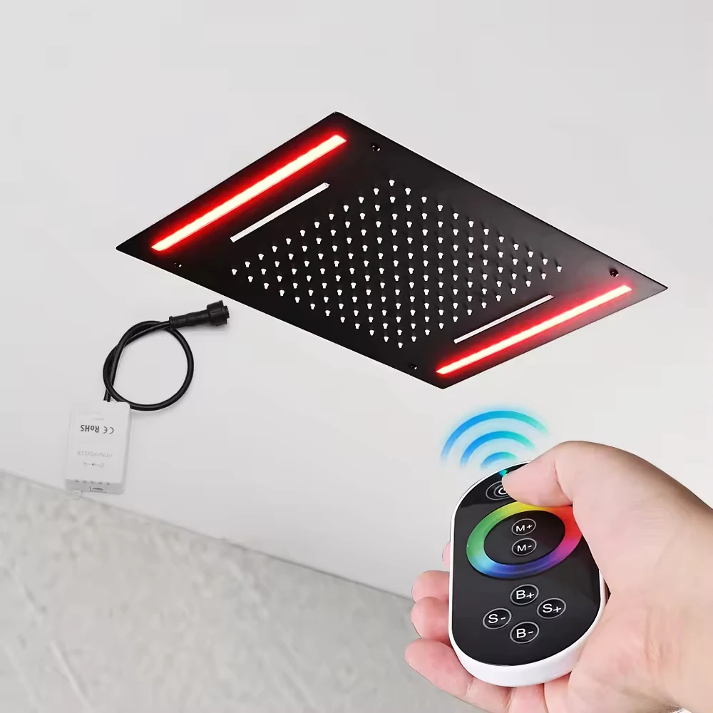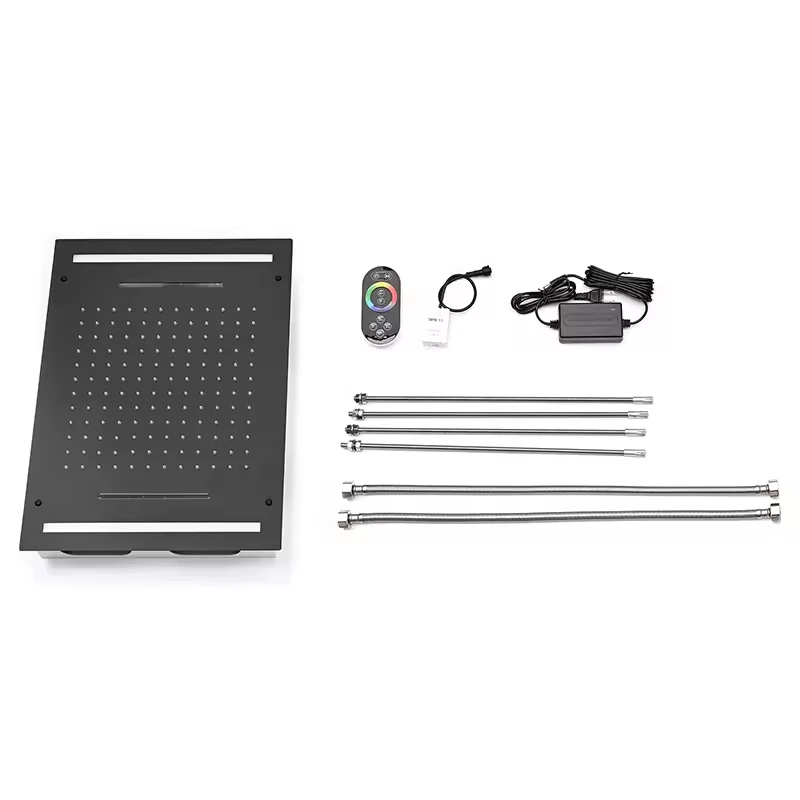 FEIDU Modern Black Wall-mounted LED Shower Head with Brass Remote Control Waterfall Design Bathroom Faucet Accessory