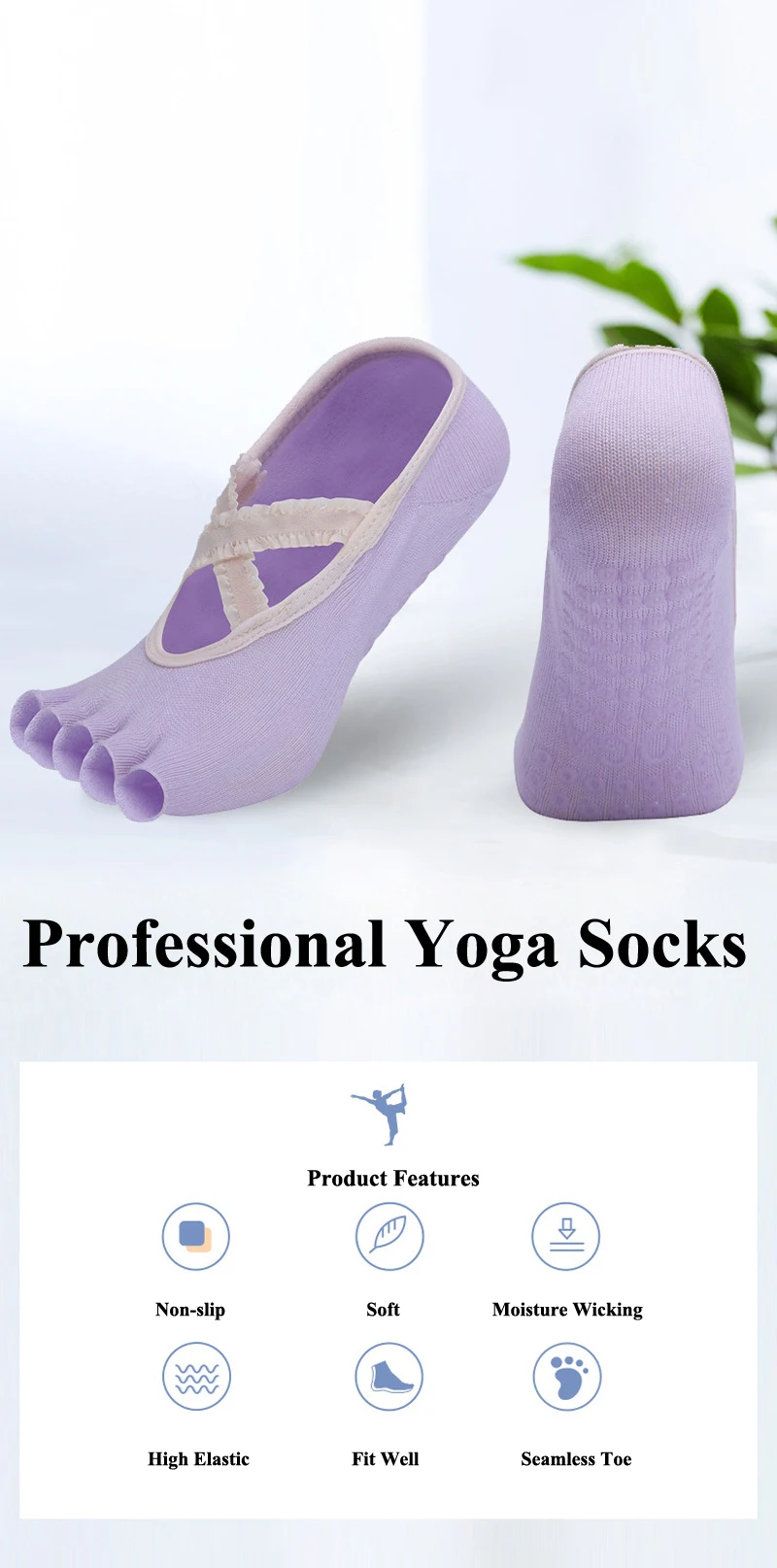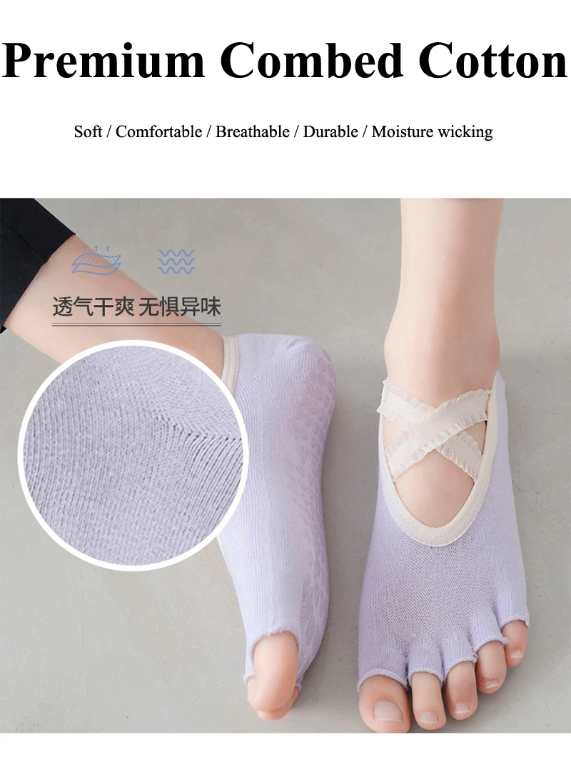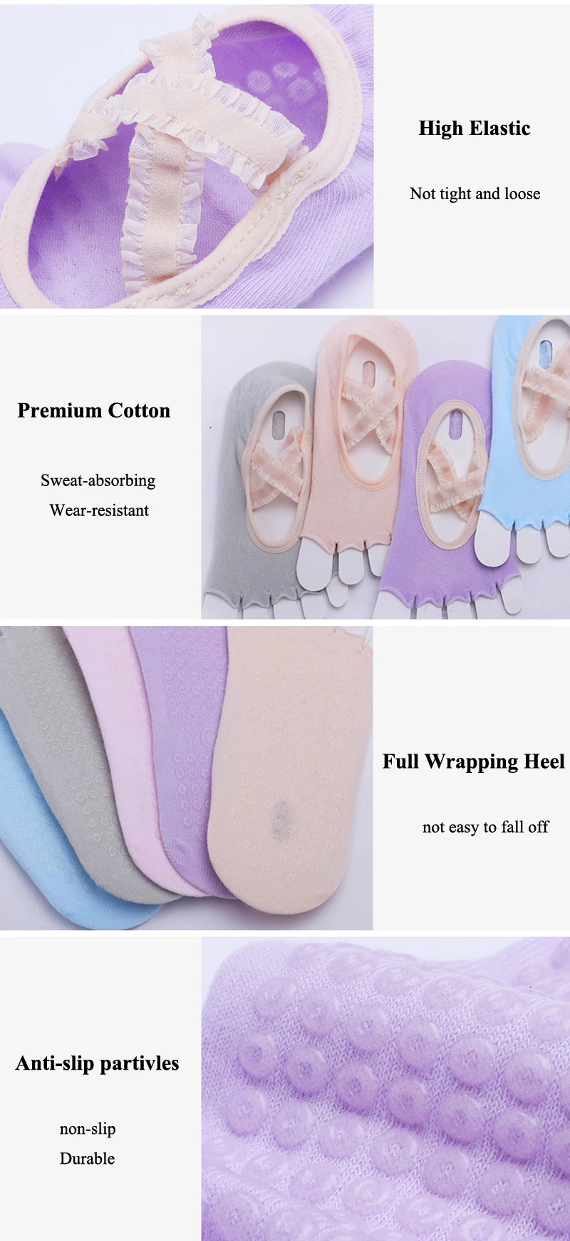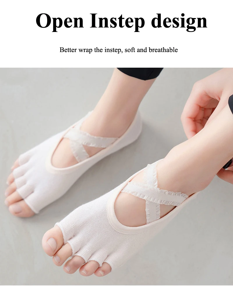 Five Finger Yoga Socks Lace Cross Strap Bandage Non Slip Gym Workout Pilates Ballet Dance Cotton Split Toe Grip Floor Socks