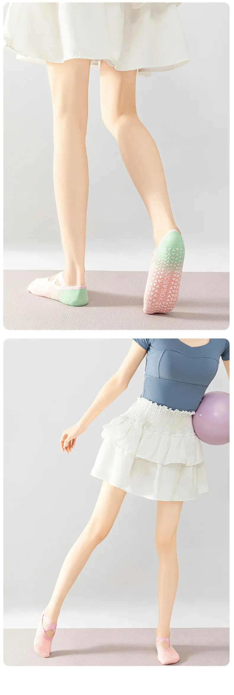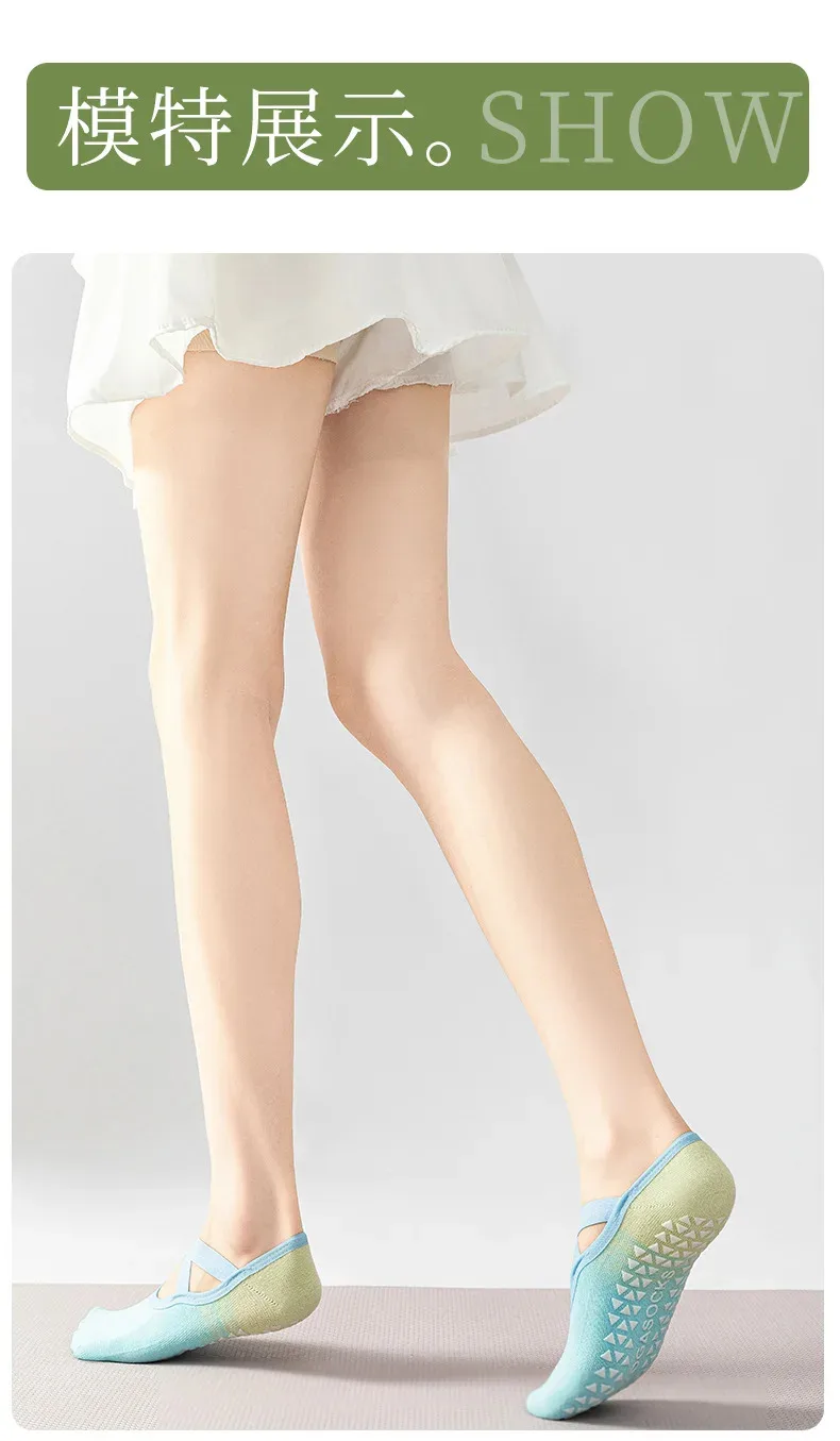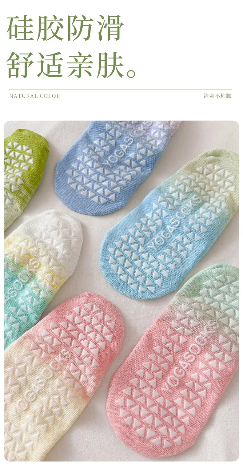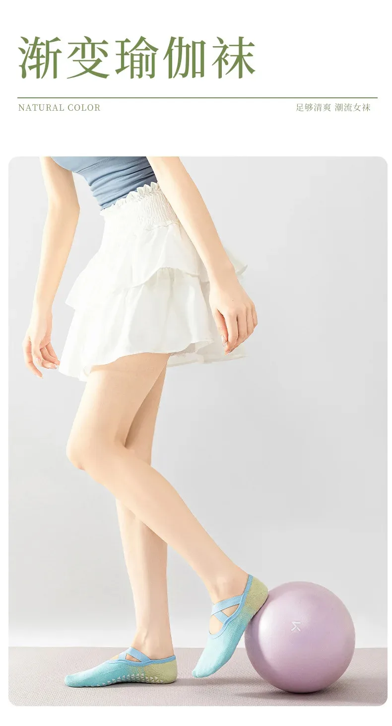 Gradient Non-Slip Yoga Socks for Women Silicone Grip Pilates Toe Socks Anti-Sweat Barefoot Shoes 4-Season Stretchable