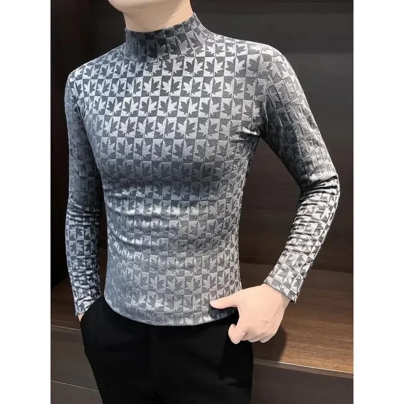 Half Turtleneck Long-sleeved T-shirt Men's New Spring and Autumn Trendy Inner Layering Shirt