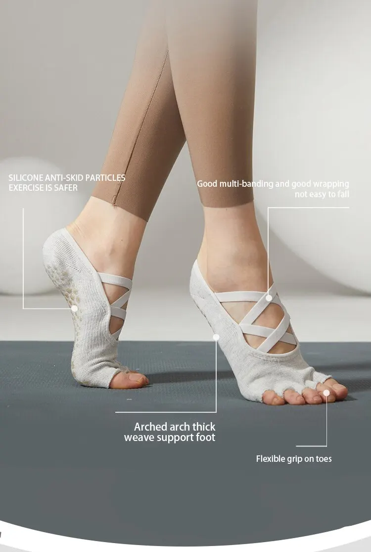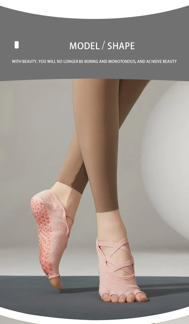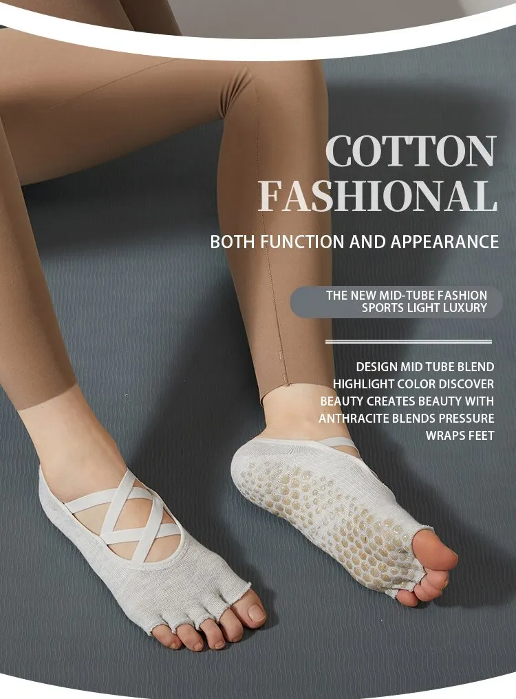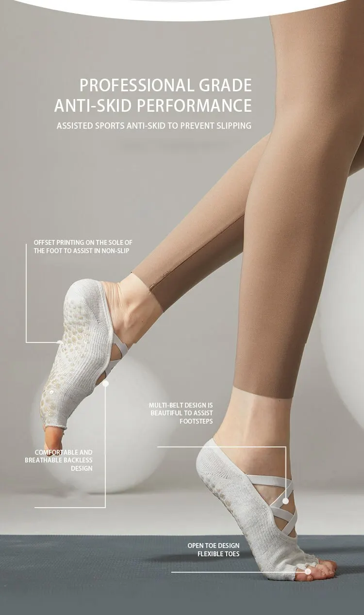 Ladies Yoga Socks Non Slip Grips Pilates Socks Pure Barre Ballet Toeless Socks Breathable Ankle Yoga Socks Women Fitness Socks