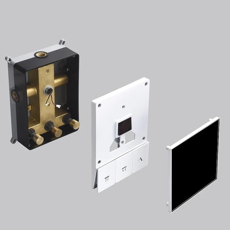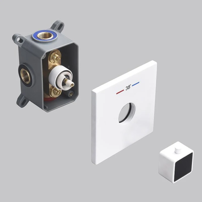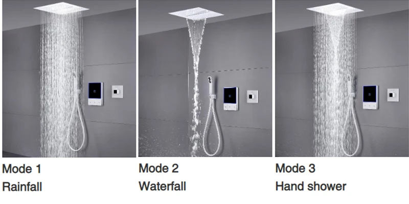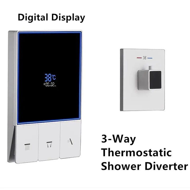 Smart Temperature Display 3 Function Thermostatic White Shower System Set with 16 Inch Large Bathroom Waterfall Rain Shower Head