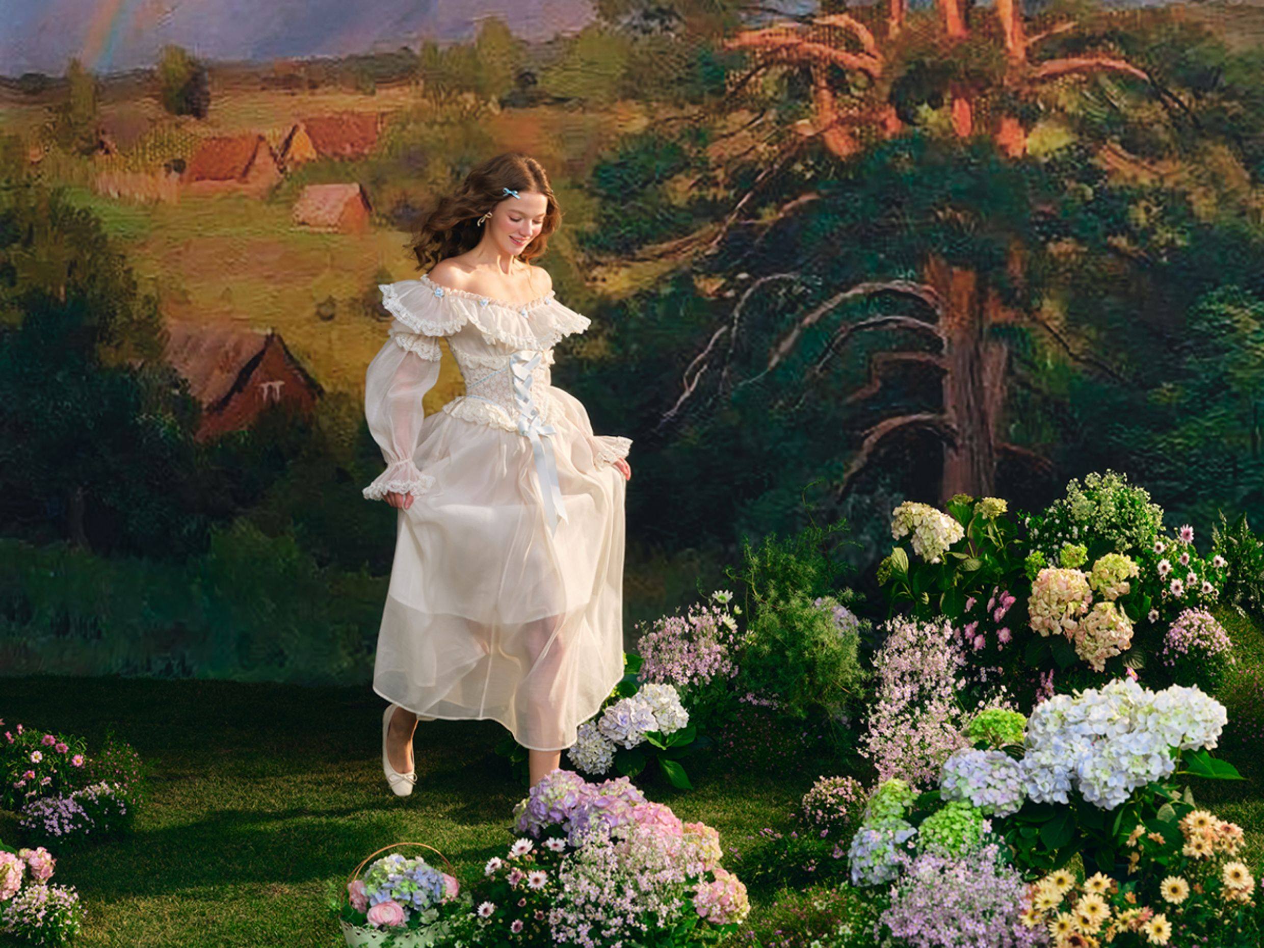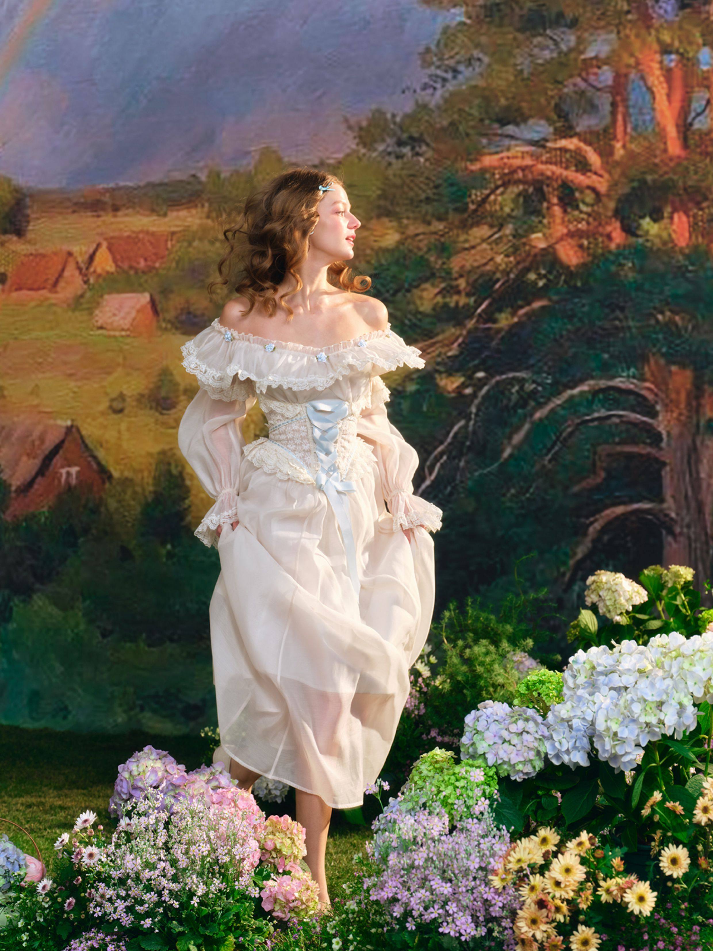 TIYIHAILEY Autumn Women Dress Full Lantern Sleeve Long Maxi Ladies XS-XL Vintage High Waist Lace Slash Neck White Lace Up 2025