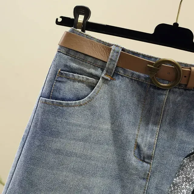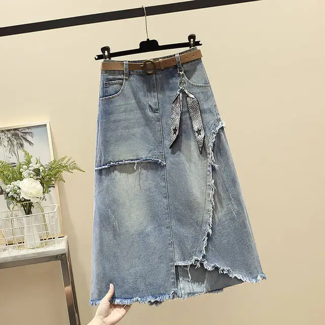 With Slit Female Jeans Skirts Blue High Waist Midi Irregular Women's Denim Skirt Aesthetic Quality Chic And Elegant Korean Style